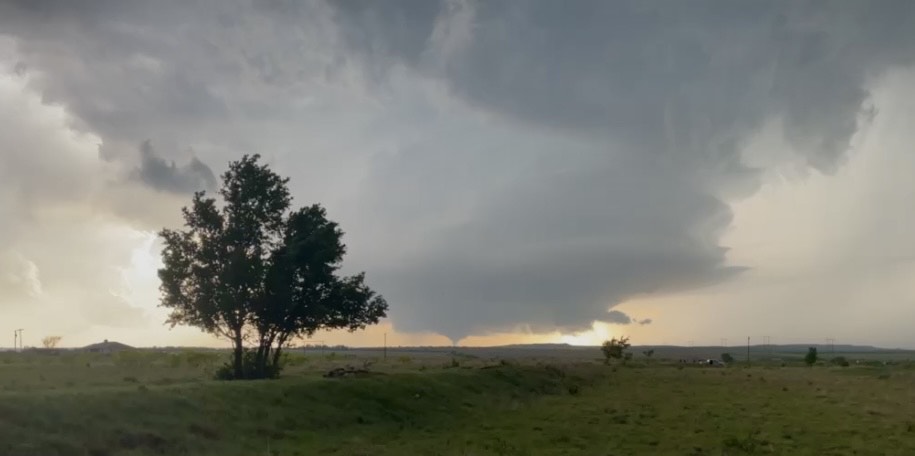 We then hightailed it back southeast, toward Matador, as softball-sized hail started falling and broke the windshields of storm-chaser cars just a few minutes behind us. We continued to watch the supercell, only from farther away and at a different angle.